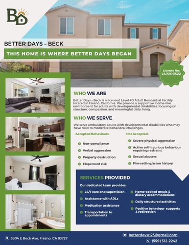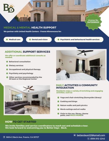 At Better Days Residential Living , we are committed to providing a safe and supportive environment for individuals with special needs. We strive to promote independence and enhance quality of life for our residents including, recreational and social activities